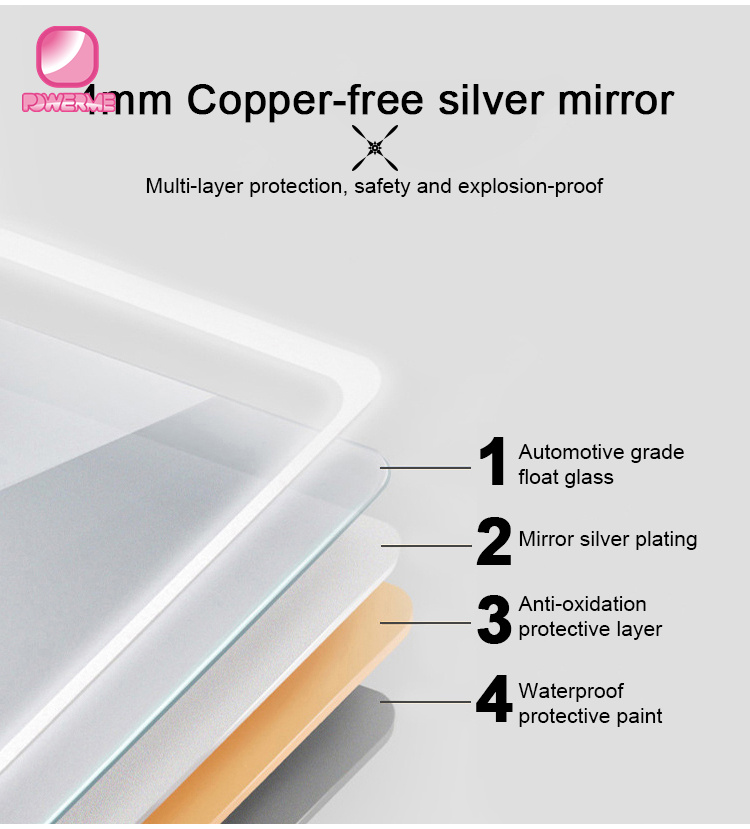Glass Material: 4~5mm thickness silver mirror