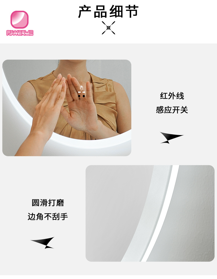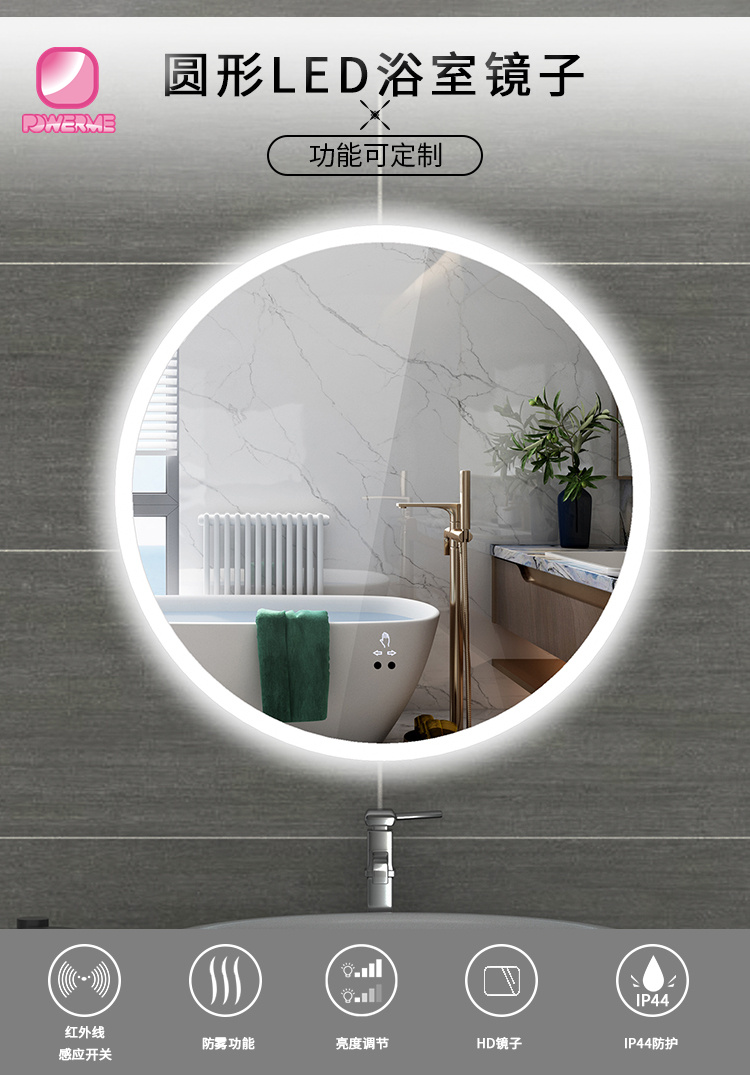 PM-A300 圓形智能LED浴室鏡 感應觸摸開關