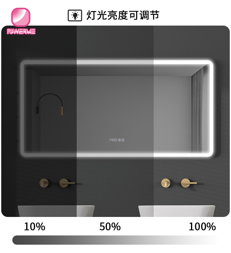 4.鏡面雙鍵觸摸帶時鐘開關,無極調節燈光亮度